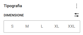 Nella tipografia troviamo 6 opzioni di grandezza del testo, da un sistema di lettere che va dalla S alla XXL.