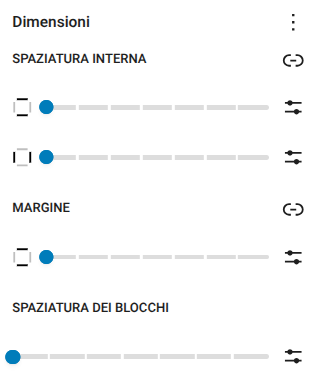 Quasi tutti i blocchi che supportano l’opzione “Dimensioni” permettono ora margini e padding fluidi: